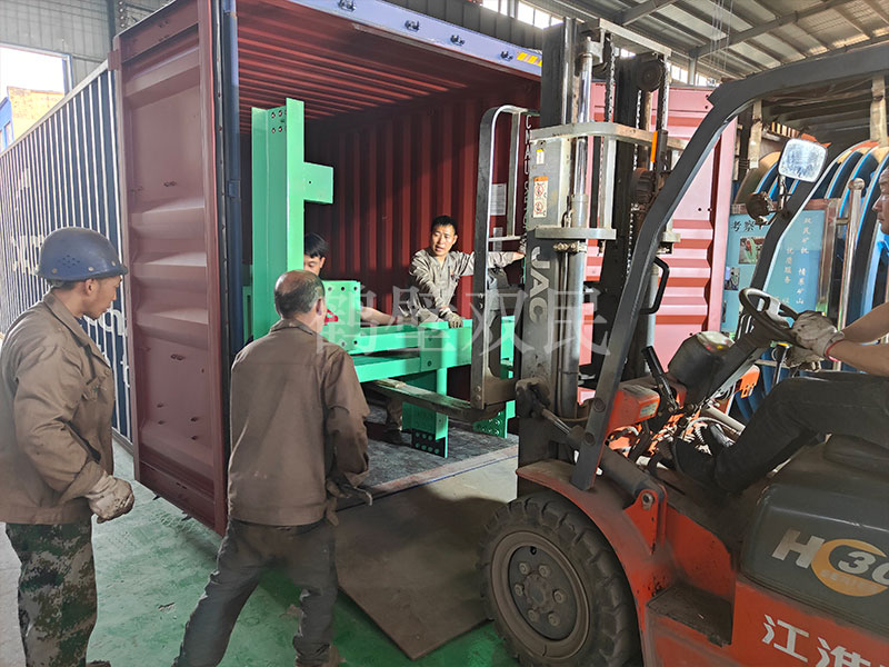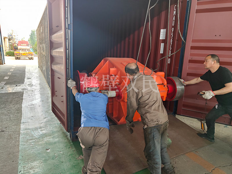 工人師傅將礦用絞車(chē)底架拆卸完成,并順利的裝入了集裝箱內(nèi)。