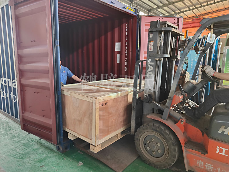 接著是將減速器和盤(pán)形制動(dòng)器,裝入集裝箱內(nèi)。