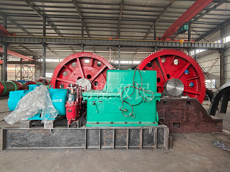 本絞車主要用于煤礦、金屬礦和非金屬礦豎井井筒掘進時懸吊吊盤、水泵、水管、注漿泵、風筒等掘進設(shè)備和張緊穩(wěn)繩,該絞車系雙鋼絲繩懸吊。將減速機上的差動手把放在差動位置,若張緊穩(wěn)繩,可使兩根穩(wěn)繩的張緊力保持相等;若懸吊水管、注漿管、風筒等管類設(shè)備,可保證其被懸吊管類設(shè)備與地面保持垂直的狀態(tài)。如果懸吊吊盤等盤狀設(shè)備,需將其差動手把放在直通位置,才能實現(xiàn)兩繩繩速的一致。