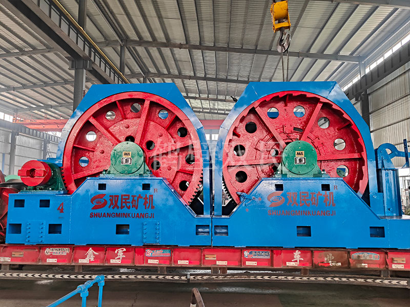 結構特點本絞車主要用于煤礦、金屬礦和非金屬礦豎井井筒掘進時懸吊吊盤、水泵、水管、注漿泵、風筒等掘進設備和張緊穩繩,該絞車系雙鋼絲繩懸吊。將減速機上的差動手把放在差動位置,若張緊穩繩,可使兩根穩繩的張緊力保持相等;若懸吊水管、注漿管、風筒等管類設備,可保證其被懸吊管類設備與地面保持垂直的狀態。如果懸吊吊盤等盤狀設備,需將其差動手把放在直通位置,才能實現兩繩繩速的一致。