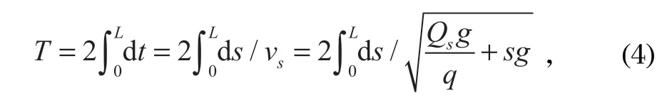 振動(dòng)波周期法是依據(jù)振動(dòng)波在鋼絲繩上的傳遞速度和鋼絲繩張力的關(guān)系,通過(guò)速度傳感器測(cè)量鋼絲繩振動(dòng)波周期,得到傳遞速度,進(jìn)而計(jì)算出鋼絲繩張力。