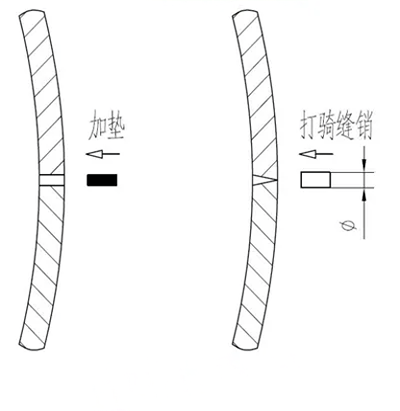 如果縫隙沿筒殼內外不均勻,一般是外側頂緊,造成貼緊的假象??梢詮耐鈧仍诮雍峡p部位打騎縫銷并可靠固定,將縫隙處撐緊。