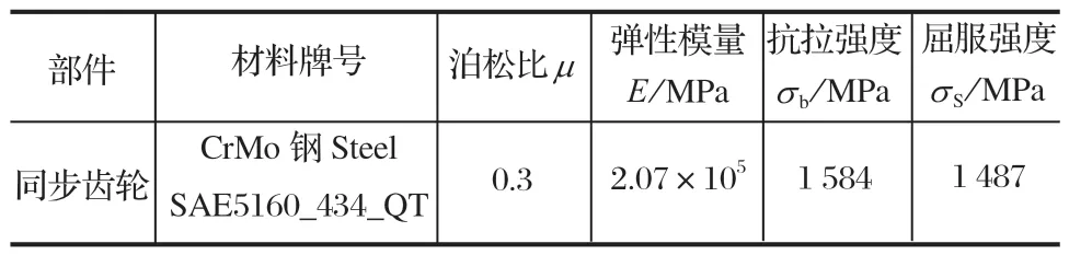 式中,各相關參數及其含義可由《機械設計手冊》查得。同步齒輪材料參數如表2所列。