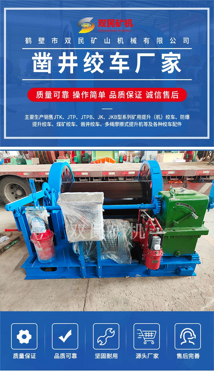 鶴壁市雙民礦山機(jī)械有限公司是鑿井絞車廠家,以制造大型礦山提升設(shè)備,電器成套自動(dòng)化控制系統(tǒng)為主的科研型高科技企業(yè),是國家礦山專用設(shè)備及配件產(chǎn)品定點(diǎn)生產(chǎn)單位。主要生產(chǎn)、銷售JTK、JTP、JTPB、JK、JKB、JKM、JKMD型系列礦用提升絞車、礦井提升機(jī)、多繩摩擦式提升機(jī)、JZ型鑿井絞車及礦山各種成套設(shè)備及配件。